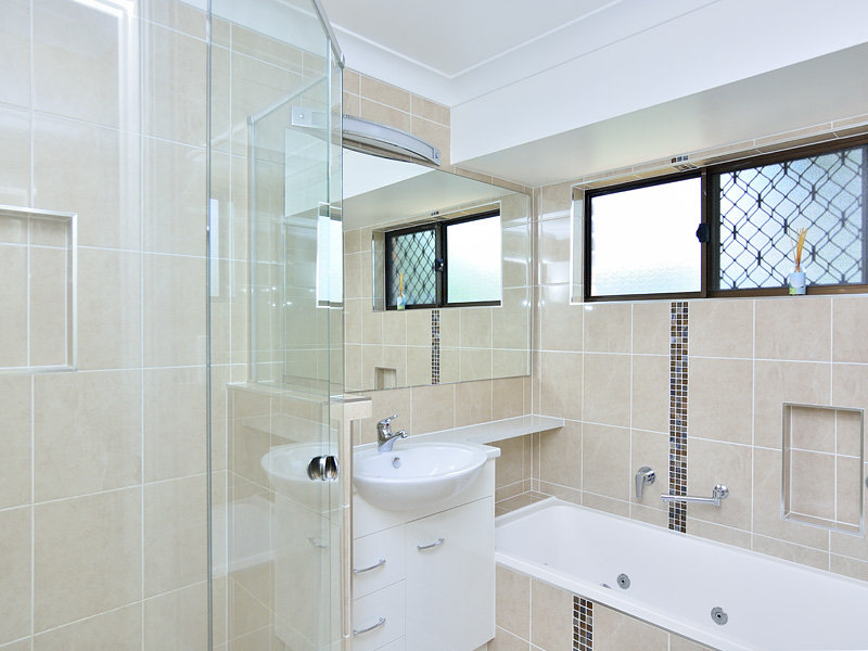 – Modern main bathroom with floor to ceiling tiling, separate shower and includes a SPA BATH!